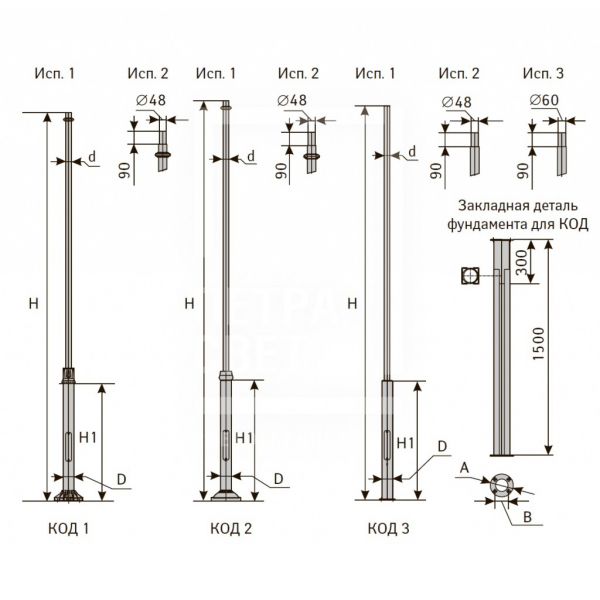 Опоры изготавливаются из трубного проката. В нижней части опоры имеется закрытый отсек (лючок) для установки автоматических выключателей и клеммных блоков. В опорах КОД-2 возможно установка декоративных чугунных элементов.
