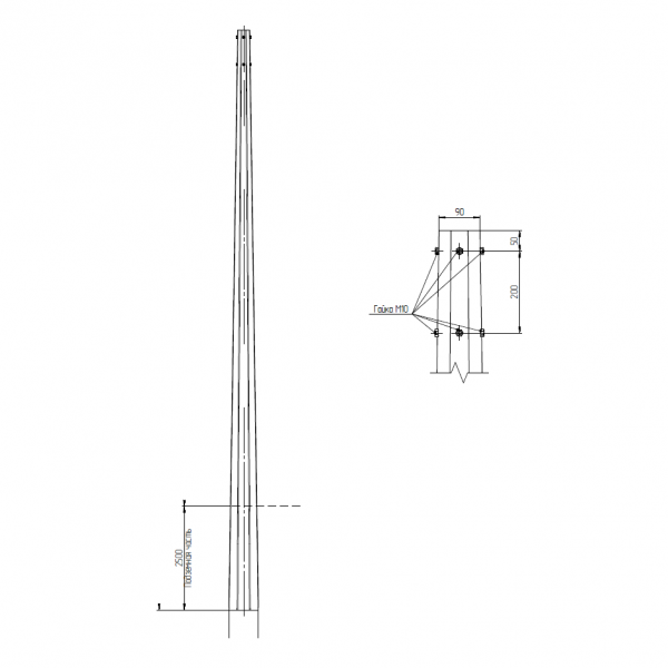 Опора освещения ОГКп-6 (1) исп. 2, где: